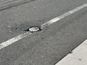車の交通量もありますが、年数が経つにつれ鉄蓋まわりの舗装が剝がれてバイクなどの転倒の恐れがあります。