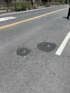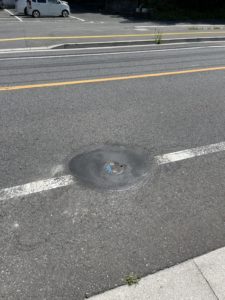 写真でわかるように道路に鉄の蓋が埋まっています。
